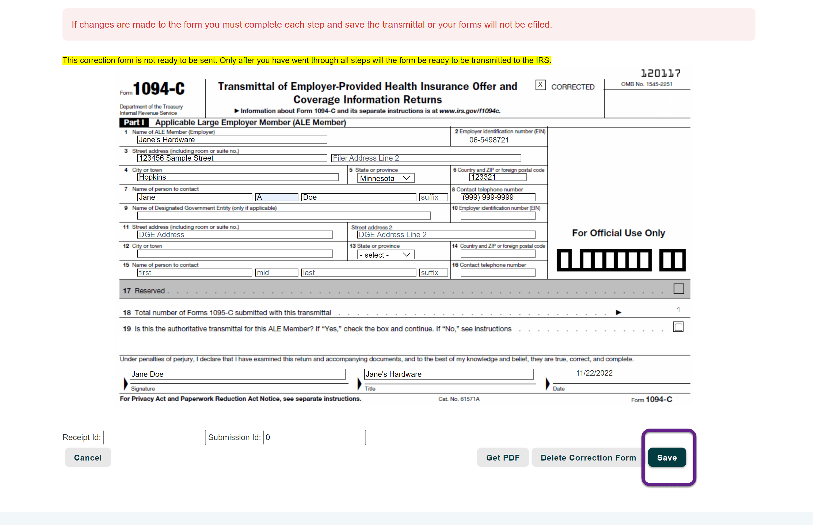 How to file a 1094C / 1094B correction eFileMyForms